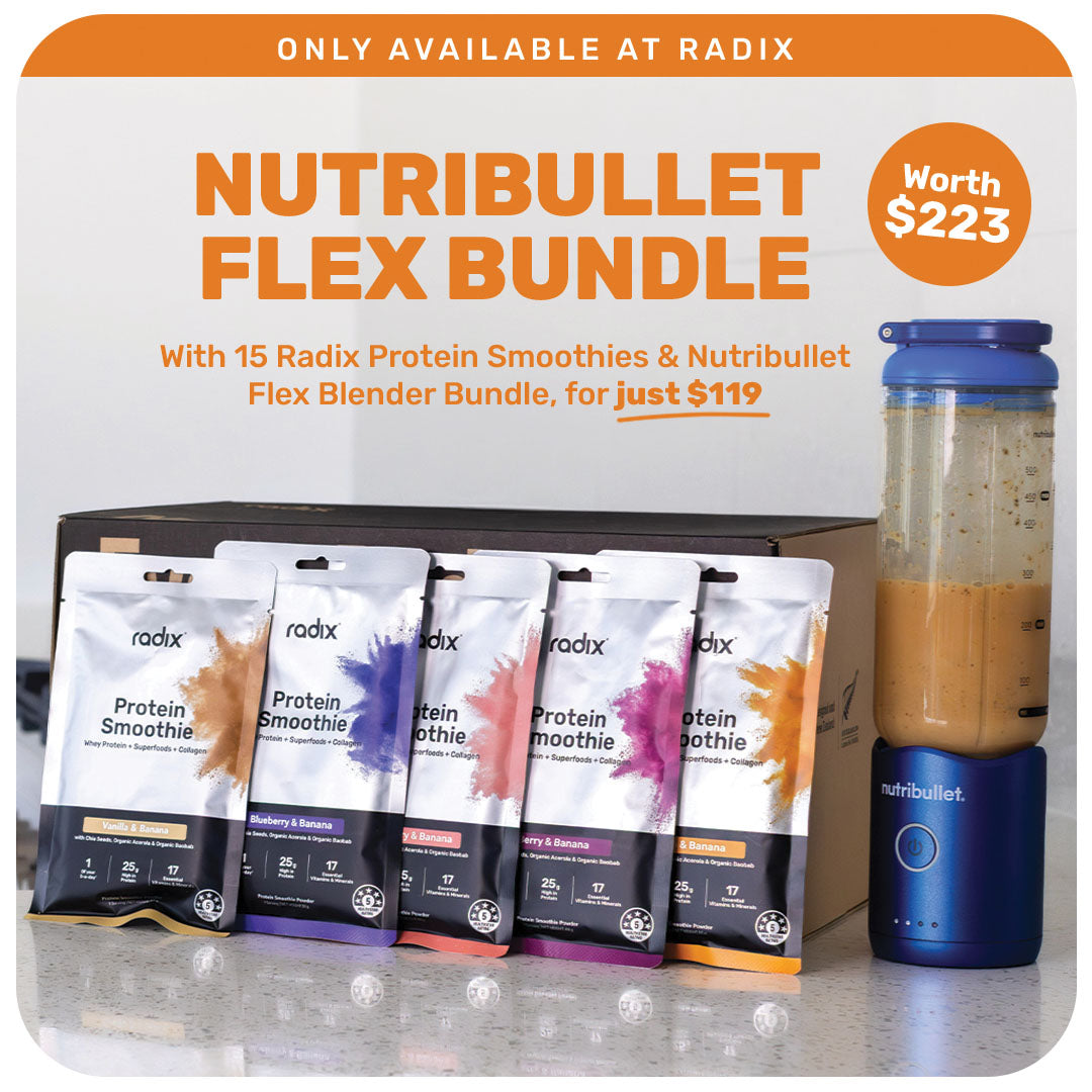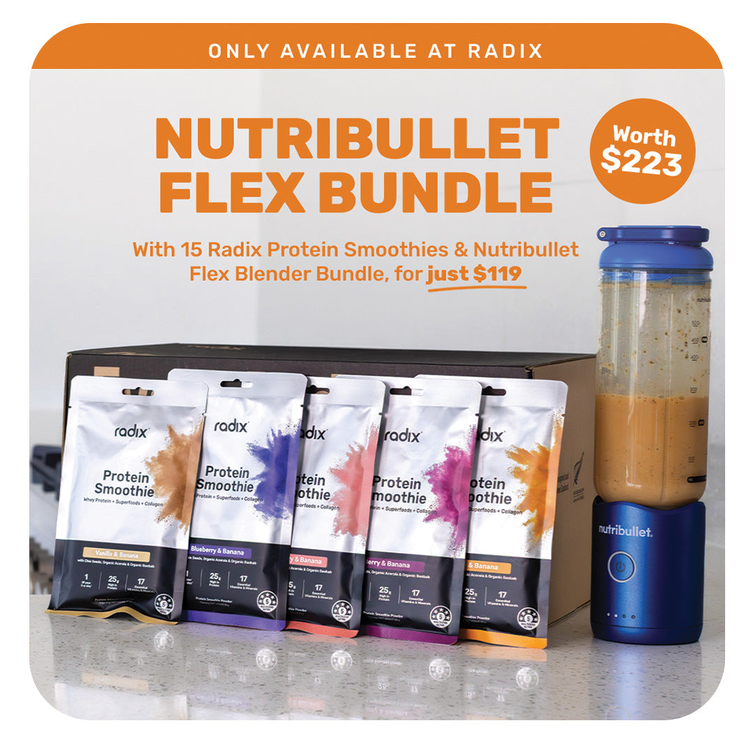 15x Sachets of Whey Protein Smoothie and a Nutribullet Flex Blender. Valued at $223 now ONLY $119