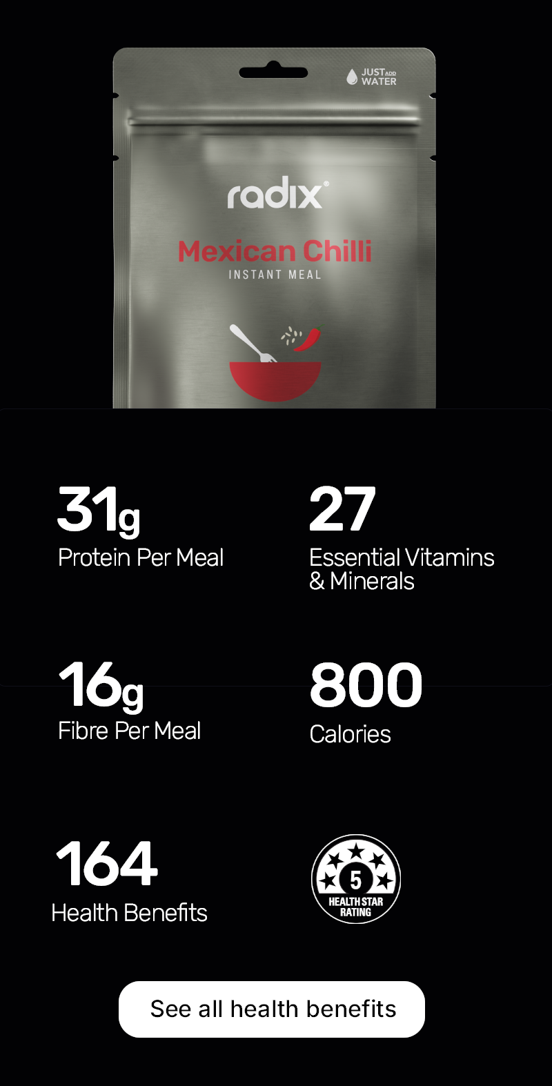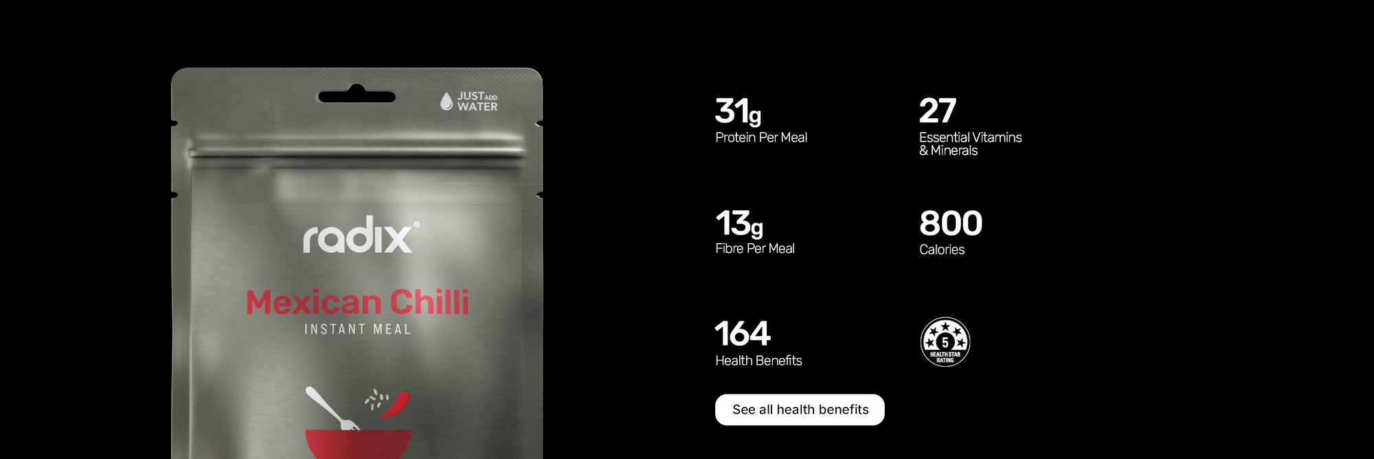 For big days out or big appetites a Radix Ultra Meal maximises energy density and flavour to keep you fuelled for longer. With 31g of protein in a nutritionally complete package our Ultra Meals also keep you feeling fuller for longer too. Ready in just five minutes and with six delicious flavours to choose from.