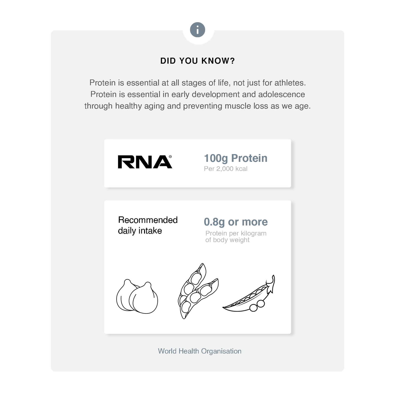 Radix Nutrition products are designed to provide all 9 essential and 11 non-essential amino acids to levels that meet or exceed WHO recommended RDIs for protein, providing 100g of protein per 2,000 kcal.
