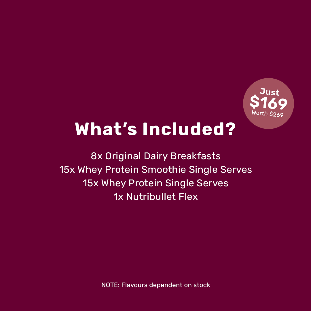 Fuel your training with the Radix Athlete Bundle - an all-in-one performance nutrition pack designed to support energy, recovery, and daily wellbeing. Featuring 8 Original Dairy Breakfasts, 15 Protein Smoothie Single Serves, 15 Protein Single Serves, and a Nutribullet Flex Blender, this bundle gives you everything you need to stay fuelled at home, at the gym, or on the go.